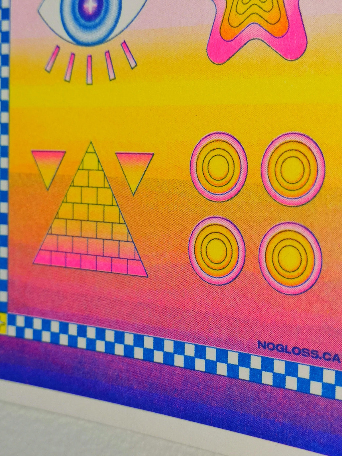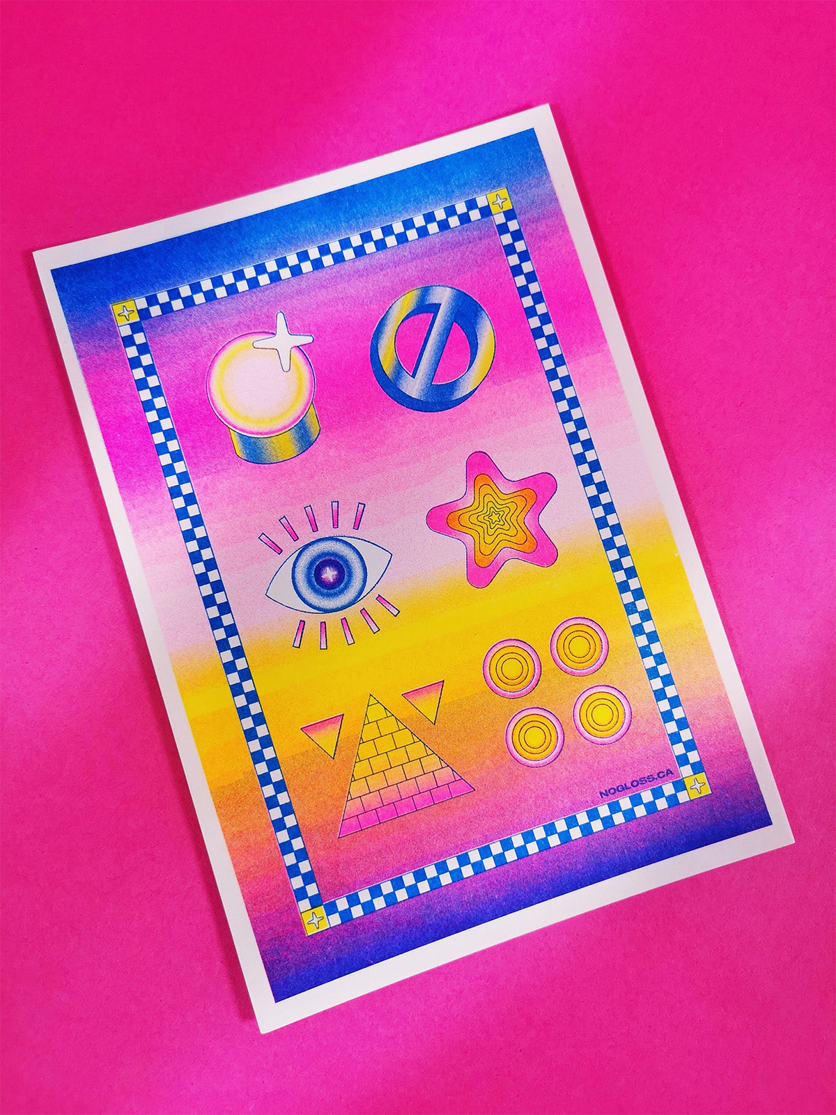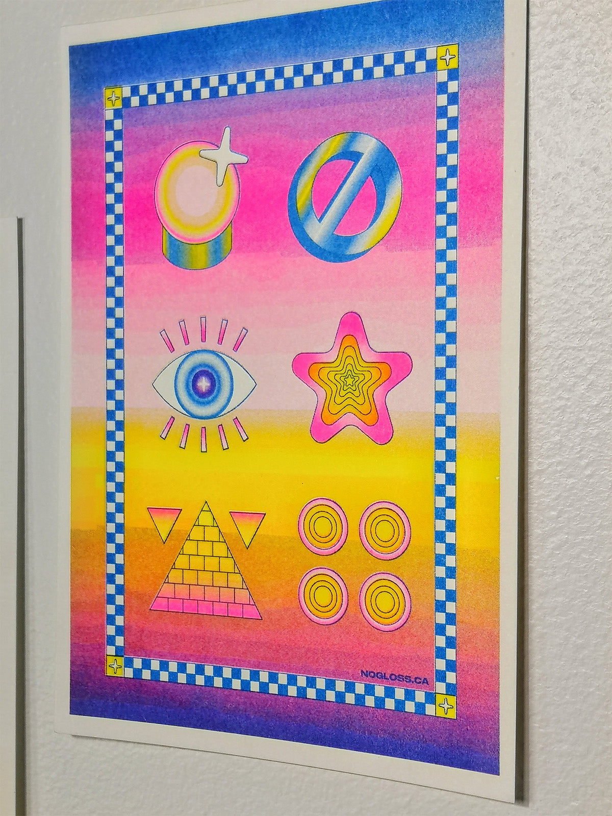 Inspired by the No Gloss branding, we're showcasing a small variety of different Riso gradients styles, done with the screen mesh option.