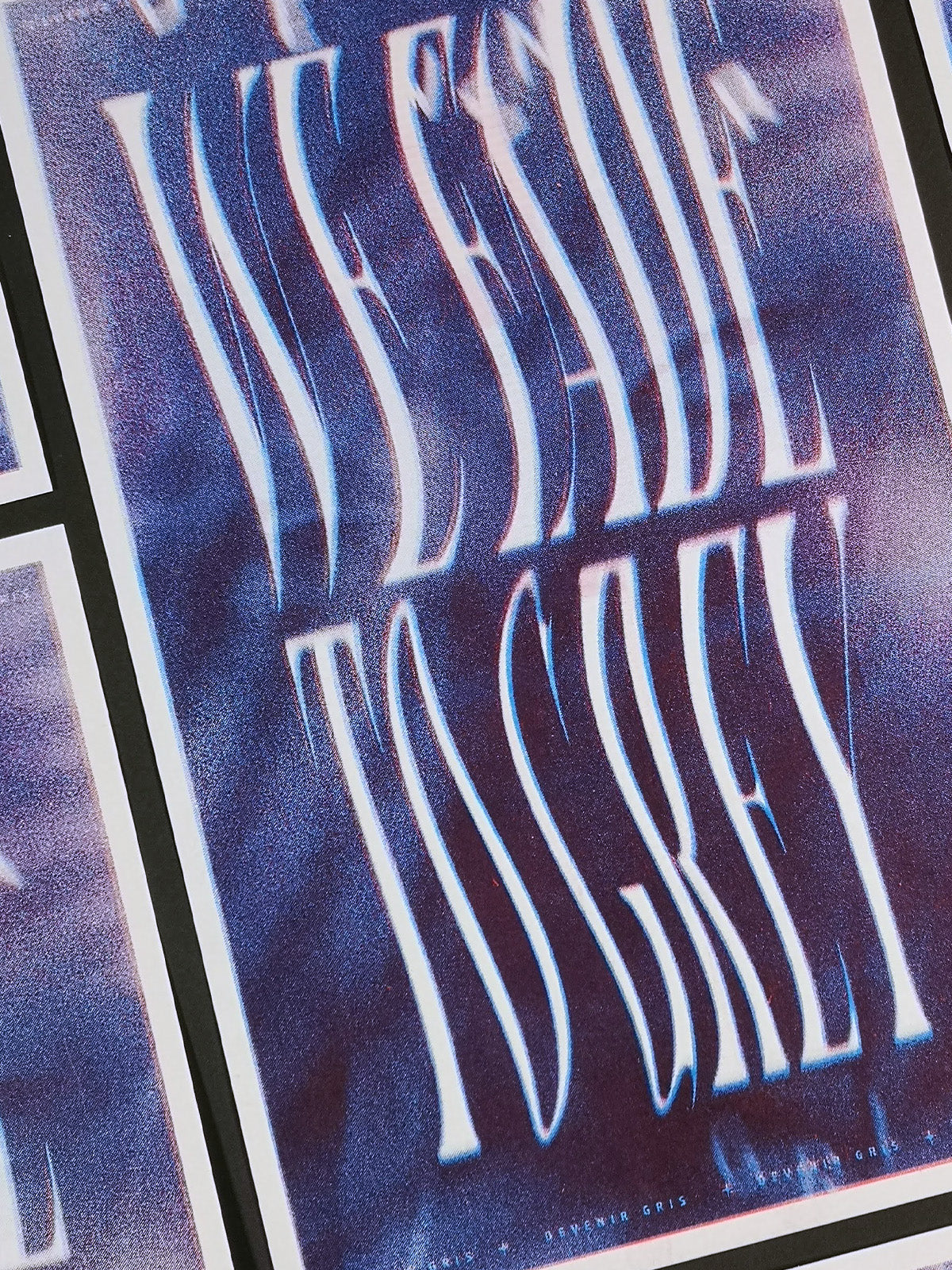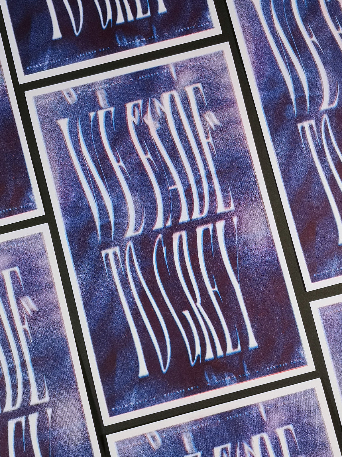 Made by overlaying and red and blue layers, while adding an extra misalignment gap to reveal the two colors, creating an anaglyph effect. Inspired by the Visage's Fade to Grey.